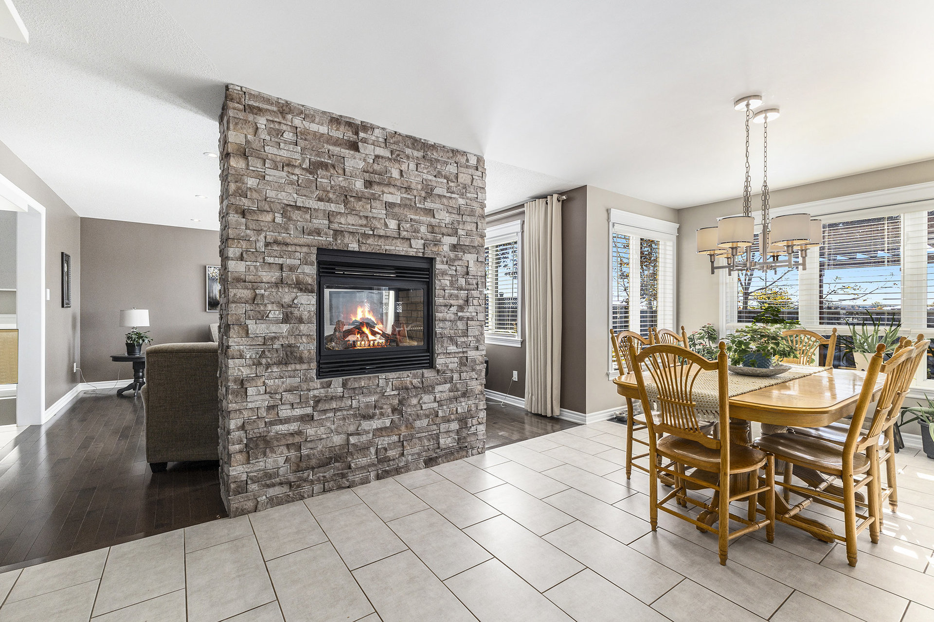 Step inside to a welcoming foyer complete with a walk-in closet for added convenience. A versatile main-floor den or dining room offers flexibility for your lifestyle, while the inviting living room with a two-sided fireplace flows seamlessly into the bright and spacious eat-in kitchen. Designed with the home chef in mind, the kitchen boasts ample cabinetry, extensive counter space, and a walk-in pantry. Off the garage entry, you’ll find a practical mudroom with a spot to take off boots and coats.