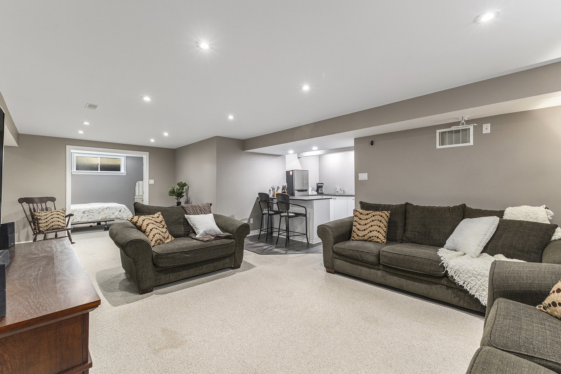 The finished lower level extends the living space with a recreation room, a generous fifth bedroom, a full 4-piece bathroom, and a kitchenette — ideal for overnight guests, extended family, or an in-law suite.